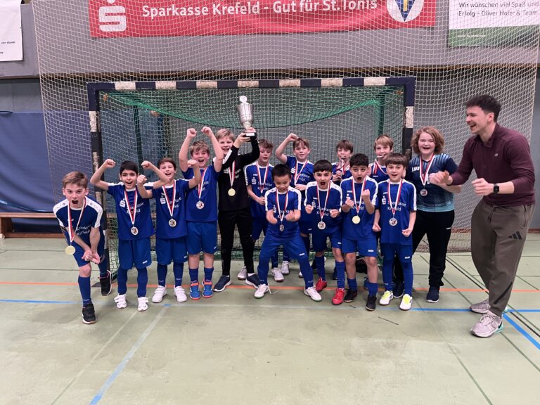 Am 30.01.2025 fand in der Sporthalle am Corneliusfeld zum zwölften Mal der MEG-Sparkassen-Cup statt. Zum ersten Mal aus organisatorischen Gründen aber an einem Freitag. Bei toller Stimmung duellierten sich fußballbegeisterte Grundschülerinnen und Grundschüler aus Tönisvorst und Forstwald, um den begehrten Wanderpokal für ein Jahr an die eigene Grundschule zu holen. Zwischendurch schauten dabei auch die aktuellen MEG-Schüler vorbei und unterstützten die zukünftigen Schulkollegen ebenfalls lautstark. Gesucht wurde der Nachfolger der Grundschule aus Vorst, die den Pokal im letzten Jahr gewonnen hatte.