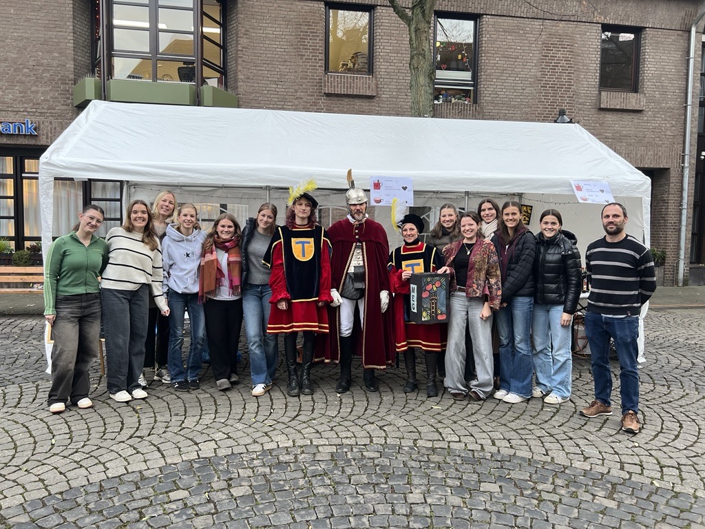 Am St. Martinszug verkaufte die Q1 leckeren Glühwein und warmen Kakao zugunsten der Stufenkasse. Bei winterlicher Stimmung kamen viele Besucherinnen und Besucher vorbei und sorgten für eine rundum gelungene Aktion. Ein herzliches Dankeschön gilt allen, die mit ihren zahlreichen Spenden und ihrem Besuch zum Erfolg beigetragen haben!